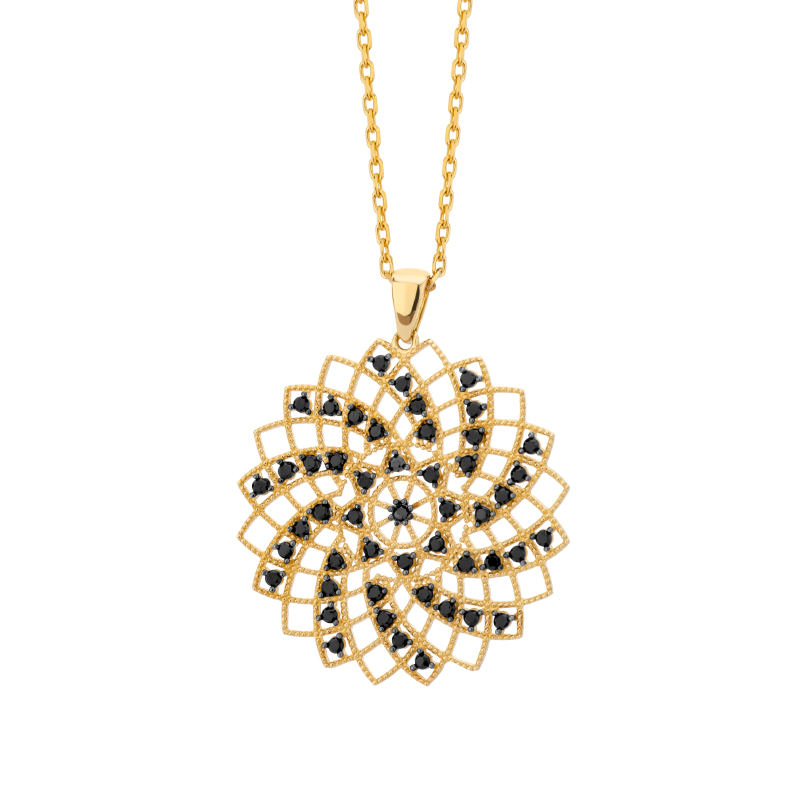 Zawieszka złota rozeta z czarnymi cyrkoniami