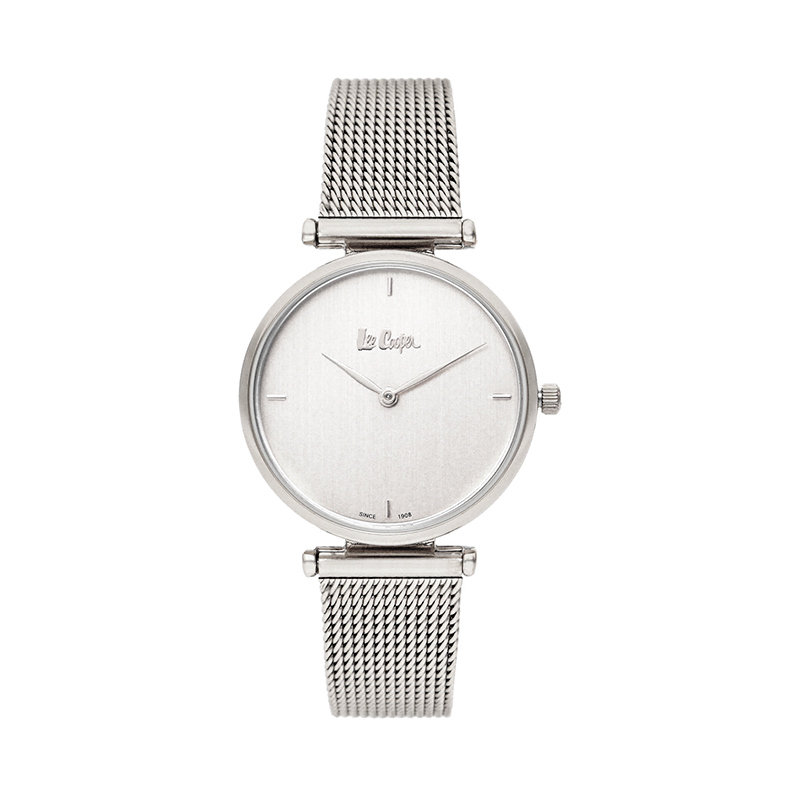 Damski zegarek Lee Cooper. Całość zegarka utrzymana w srebrnej kolorystyce. Szarą tarczę przykrywa szkło mineralne. Bransoleta typu mesh posiada możliwość regulacji długości. Dzięki swojemu minimalizmowi, zegarek idealnie pasuje do każdej stylizacji. Posiada dwuletnią gwarancję producenta.