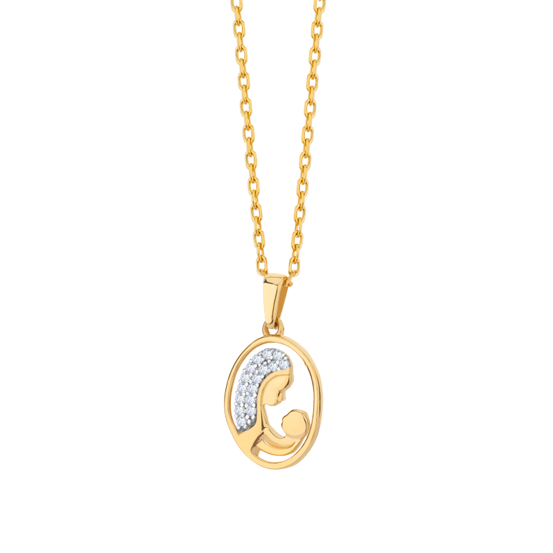 Złoty medalik ażurowy z cyrkoniami – Matka Boska